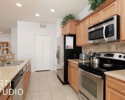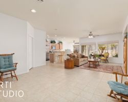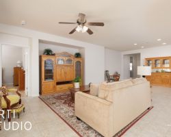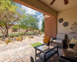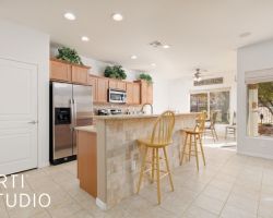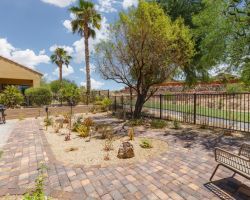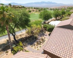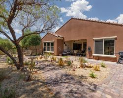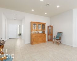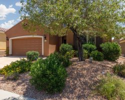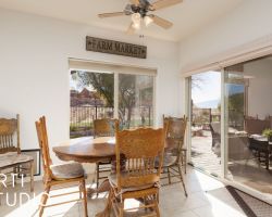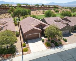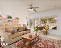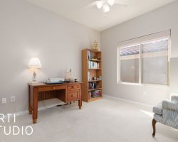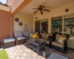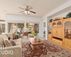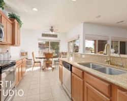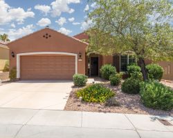 Beautiful Golf Course Home with Stunning Views. Exterior was recently painted. This well-maintained home has 3-bedrooms, 2-bathrooms plus den, and offers gorgeous golf course views from breakfast nook, kitchen, great room and main bedroom. Kitchen features large eat-in bar island, stainless steel appliances, granite countertops and reverse osmosis water system. Home includes a custom-painted breakfast nook and has formal dining room. Great room is filled with natural light and offers prime views of the golf course, making it perfect for hosting family and friends. Main bedroom boasts an ensuite bathroom with split dual vanities, large walk-in closet, and spacious tiled walk-in shower. Cell shades in most rooms and plantation shutters in guest bedroom. East facing backyard is ideal for mornings sunrises. Additional features include a covered patio that is inset which gives backyard privacy. Water softener & shelving in the garage. Conveniently located, a short 15-minute walk, to the Sun City Clubhouse with indoor/outdoor pools/spas, state of the art gym, indoor walking track, bocce, tennis, pickle ball courts and 18 hole putting green. Discounts at Conestoga Golf Club & 1880 Grille.