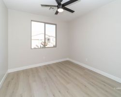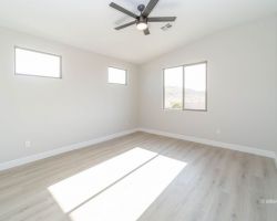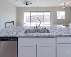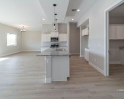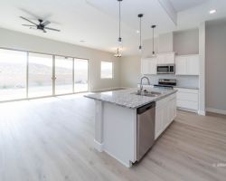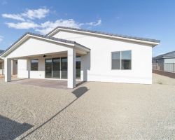 Welcome to this stunning home, constructed in 2024 but never lived in. Featuring 1819 sq ft with 3 bedrooms, and 3 bathrooms, luxury vinyl plank, LVP, throughout home, with the exception of bathrooms where you will find simulated marble tile. This home boasts an open concept floor plan with kitchen open to living room with 16'x8' sliding glass door which overlooks a large covered patio with views of the mountains where you can enjoy desert sunsets. Step into the bright and stylish kitchen, where modern elegance meets everyday functionality. The light-colored flooring enhances the airy feel, perfectly complementing the crisp white cabinetry for a clean and timeless look. A large walk-in pantry offers ample storage, keeping your countertops clutter-free while ensuring all your kitchen essentials are within easy reach. Don't forget the large RV garage 49 ft. deep with a 14 ft. high door. Located in the new Val Vista neighborhood don't miss this incredible opportunity-schedule a showing today! Low monthly HOA