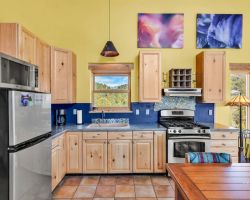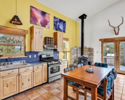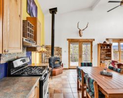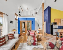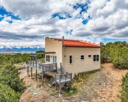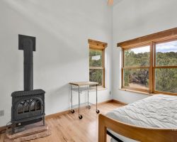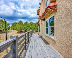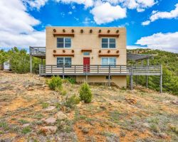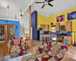 If you're looking for a retreat to relax and rejuvenate, look no more. This Spanish style home on 11.61 acres is move in ready. Hardwood floors and vaulted ceilings give an expansive feel to the space. Large windows wrap the rooms with natural sunlight, and the views stream in. The main bedroom is private and accessed with French doors, the 2nd bedroom loft has a separate access onto a small balcony. The entrance is wrapped with a full composite deck so that you can fully enjoy the outdoors in the evenings. A solar system (12 batteries) is fully backed up with propane gas, and a 15 KW generator. Additional storage is available in the partial unfinished basement, and detached storage shed.