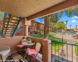 Welcome to 837 Mesquite Springs Dr # 101.....BEAUTIFUL PREMIUM POOLSIDE LOCATION. Relaxing views of the pool and spa recreation area are yours from your own covered patio. This east facing covered patio offers views of the mountains as well as the opportunity to enjoy year round outdoor experience of Mesquites fabulous weather. You are steps away from an early morning dip in the pool or a relaxing evening in the spa before bed. Kitchen offers stainless steel refrigerator, microwave, oven-range and dishwasher. Newer luxury vinyl plank in the kitchen and dining area create a contemporary feel as you enter the condo. Tenant is paying $975 a month. Interior pics will be added within the next few weeks. Showings may begin immediately. Tenant needs only 24 hour notice