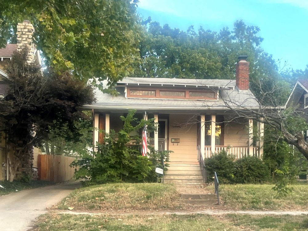 Garlinghouse bungalow in Potwin area. Youngstown kitchen with chrome edged counter. Natural woodwork, tall baseboards, short-plank oak flooring, a real front porch, knotty pine back porch, oversized closets, upstairs bedroom/sunroom + floored large attic storage space/closet with daylight on 3 sides, and more. So much to love here! Chain link fenced pet/play area behind garage in deep backyard. Needs some TLC, priced to sell and selling as is.