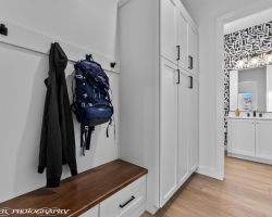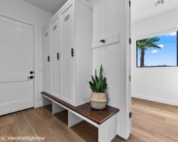 This mud room is the entry from the double size garage next to the laundry room and desk area.