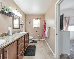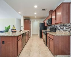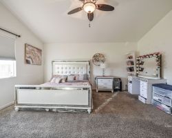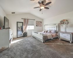Built in 2011, this charming 3-bedroom, 2-bath home offers an open and inviting layout in the Ridgecrest Heights neighborhood. The spacious kitchen features granite countertops, black appliances, an eat-in bar, and plenty of room for cooking and entertaining. It opens directly into the living room, which boasts tall ceilings and a slider leading to the backyard.The grand primary suite features vaulted ceilings, a walk-in closet, and a large bathroom with double sinks. The backyard includes a covered patio, perfect for relaxing and partial block wall fencing for added privacy. All appliances stay, making this home truly move-in ready!Don't miss out on this well-maintained home with great living space inside and out!