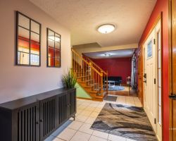 Welcome to this spacious 5-bedroom, 3.5-bath home set on nearly an acre, offering room to live, work, and play just minutes from OU and uptown Athens. The main level features a bright kitchen with two pantries, breakfast area, dedicated dining room, living room, and a spacious family room with a fireplace plus access to the patio overlooking the backyard. A convenient main-floor bedroom-perfect as an office-along with a laundry room and half bath round out this level.Upstairs, the large primary suite delivers the retreat you've been looking for with a walk-in closet, dual vanity, jacuzzi tub, and separate shower. Three additional generously sized bedrooms and a full hall bath provide plenty of space for family or guests.The walk-out lower level is fully finished and built for fun, offering an enormous rec room, a full bath, and plumbing already in place for a wet bar. An attached two-car garage adds everyday ease, and the home sits on a hard-top road for simple year-round access. Plenty of space, multiple living areas, and a fantastic location-this one checks all the boxes just in time for Christmas!
