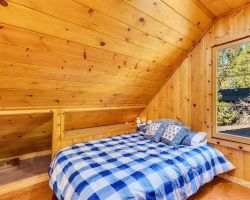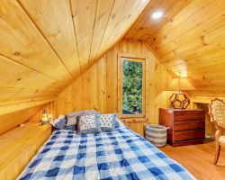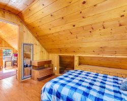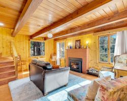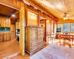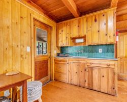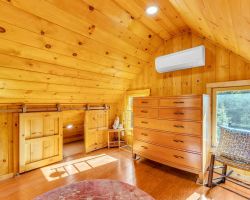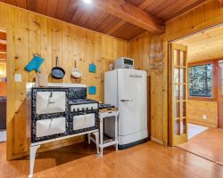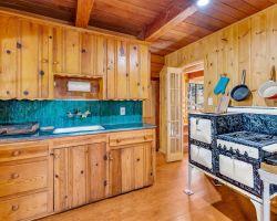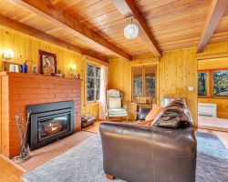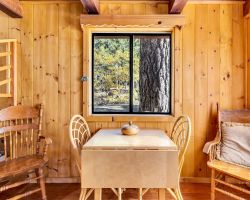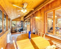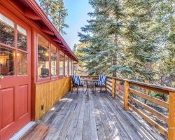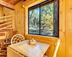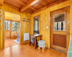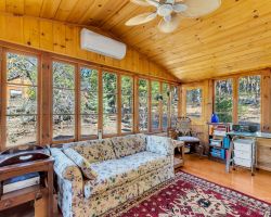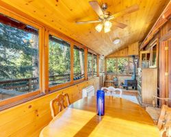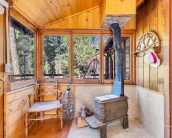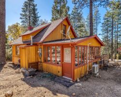 Unique opportunity to purchase a 1949 cabin with a terrific view of Tahquitz Rock in peaceful Fern Valley!. Recently renovated with new siding, new bathroom and new separate 2 car heated garage with finished storage loft. Natural light which floods two large sunrooms. There is a cozy wood burning vintage fireplace in the living room, a wood stove in one of the sunrooms, a mini-split in the other. The upstairs 2 room suite has a mini-split as well along with lots of storage. Spacious front deck completes this quaint getaway.