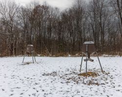 Discover a rare 60-acre retreat where rustic comfort meets incredible outdoor living. This 3-bedroom, 2-bath cabin welcomes you with warm wood interiors, soaring vaulted ceilings, and stunning wide-plank floors crafted from Athens County timber. Three wood-burning fireplaces, including one on the front porch,create cozy gathering spaces throughout the seasons. The open layout flows into a bright kitchen and living area, while the loft offers untapped potential for extra sleeping space, quiet reading nook or storage. Step outside with super easy access to a hunter's paradise: established food plots of turnips, clover, and soybeans, multiple deer stands, feeders, and watering holes, everything in place to attract and sustain trophy whitetail. A spacious barn with storage and a loft keeps equipment organized and sheltered. The hilltop setting delivers unforgettable sunrise and sunset views, with hunting literally a few hundred feet from your back door. You'll feel worlds away, yet you're just minutes to shopping, dining, and all of Athens' conveniences. Whether looking for a weekend retreat, hunter's paradise, or primary residence, this is a view you'll never forget!