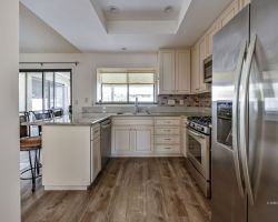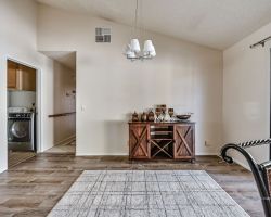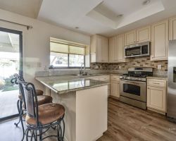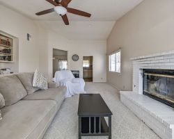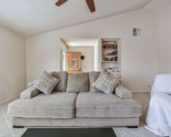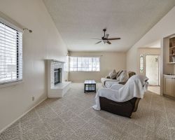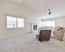 Adorable Heritage Village home featuring a cute, updated kitchen with granite countertops, white cabinetry, stainless steel appliances, and a stylish tile backsplash. The spacious living room offers a cozy brick fireplace with built-in shelving, perfect for relaxing or entertaining. Enjoy the convenience of indoor laundry and excellent hallway storage.The cozy primary suite includes a slider leading to the backyard, where you'll find a good-sized covered patio, ideal for BBQs, morning coffee, or evening relaxation.All of this plus the fantastic Heritage Village amenities, including a community pool, tennis courts, basketball courts, clubhouse, and more. Comfortable living with a great community feel-this one is easy to love.