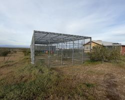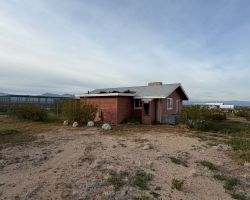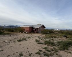 Discover your desert escape on over 2 acres of prime land bordering BLM wilderness-endless trails and starry nights await! This charming 1-bed, 1-bath fixer-upper (848 sq ft, built 1984) boasts solid bones ready for your vision: gleaming granite counters, durable porcelain tile, a striking natural rock fireplace, and a custom outdoor BBQ for epic gatherings. Outside, a massive chain-link enclosure with reinforced stalls is perfect for horses, storage, or hobbies, all secured by a full perimeter fence. Enjoy ultimate privacy yet convenience-just minutes from town. A rare gem with massive potential-transform it into your dream retreat today!