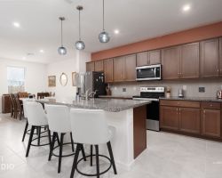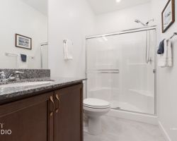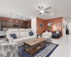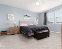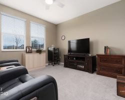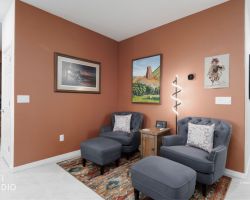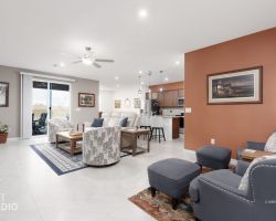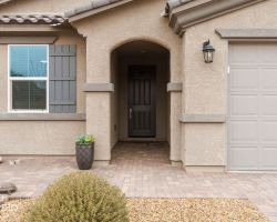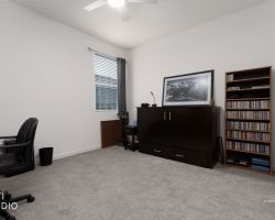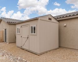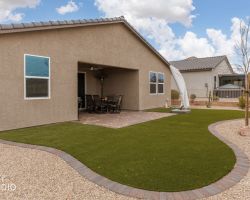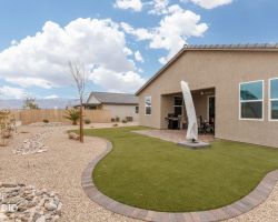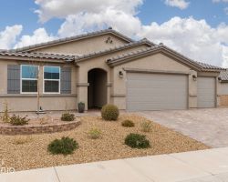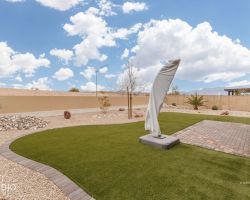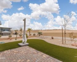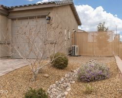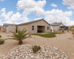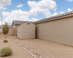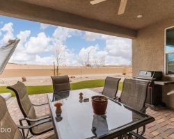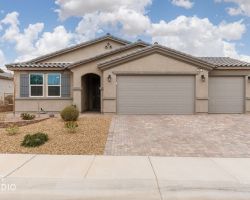 Move-in ready 3-BR/3BA den includes kitchen appliances, washer/dryer, 6 counter stools, sleep number bed in main BR, 7-piece patio dining set & propane BBQ. Paver driveway & walkway leading to a raised planter gives home great curb appeal. Rectangle tile flooring creates a unique visual effect increasing sense of space. Carpet in BRs & den creates comfort & warmth for a cozy atmosphere. Main & 2nd BR have ensuite bathrooms, making it a luxurious feature in the home. Natural beauty of granite counter tops & modern stainless-steel appliances enhances the aesthetic appeal of the kitchen. Reverse osmosis system in kitchen provides improved water quality ensuring safe water for drinking & cooking. Main ensuite bathroom has rain shower in walk-in shower & large walk-in closet. 3-car garage is climate controlled. Water softener provides cleaner, clearer water throughout home for enhanced skin & hair health, longer-lasting appliances & reduced cleaning efforts. Covered patio is extended w/paver flooring surrounded w/artificial turf to enjoy the beautiful side mountain views. Storage shed w/workbench adds extra storage. HOA pays for front/back yard maintenance, trash, sewer & pest control