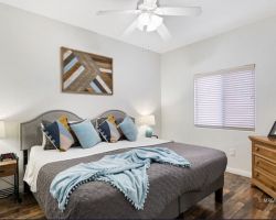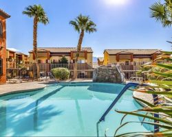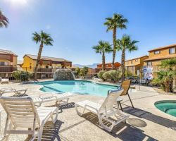 Immaculate main level 2 bed, 2 bath turnkey condo. Excellently maintained, is currently used as short term VRBO rental. Granite countertops, hardwood cabinets, updated flooring. All furnishings will be included, fully turn-key. Located above and just a short walking distance of Marilyn Park. Hawk Ridge has a beautiful outdoor pool, spa and clubhouse. Additional RV/boat parking available on-site. Potential investment opportunity as this is one of the few condominium complexes that allows for short term rentals. Just minutes from Casino action or golf one of Mesquite's seven golf courses, all within a 5 minute drive. 300 plus days of sunshine a year and only an hour from Vegas, what more do you need?