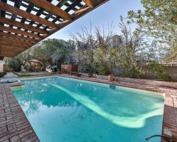 Welcome to this spacious 4-bedroom Deeter home featuring solar and a backyard built for entertaining. The open floor plan offers a large living room with French doors leading to the backyard, creating great natural light and indoor-outdoor flow. The family room features a beautiful brick fireplace, perfect for cozy evenings or gathering with friends and family. The updated kitchen is adorable and functional with solid surface countertops, updated cabinetry, and plenty of space to cook and connect while staying open to the main living areas.The primary suite is generously sized with a spacious bathroom featuring dual sinks and a unique tiled walk-in shower with built-in seating and custom tile work that highlights the craftsmanship of these popular Deeter homes. Step outside and enjoy your private backyard oasis with a large in-ground pool, covered patio, tile flooring, and plenty of space to relax or entertain. All this plus solar to help keep energy costs down. A great home just in time for pool season!