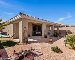 Welcome to this beautifully maintained home offering the perfect blend of comfort, efficiency, and modern style. Featuring upgraded, spacious bedrooms plus a versatile den or office-ideal as a potential third bedroom-this home adapts easily to your lifestyle.The kitchen is both stylish and functional, showcasing granite countertops, tile flooring, and abundant cabinetry for exceptional storage.The open-concept great room creates an inviting space for family gatherings and entertaining, while the primary suite offers a relaxing retreat with a walk-in shower and a generously sized closet. The backyard oasis has easy to maintain landscape that truly is inviting. Affordable low HOA dues of just $70 per month. Located just minutes from shopping, dining, casinos, and dog parks, this home also offers easy access to Las Vegas for quick getaways, as well as nearby state and national parks. You'll also be within a couple of hours of the renowned Tuacahn Theatre and other popular attractions.This home truly combines comfort, convenience, and value-come see how it fits your lifestyle and budget.