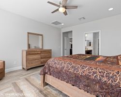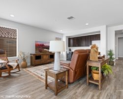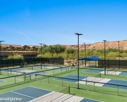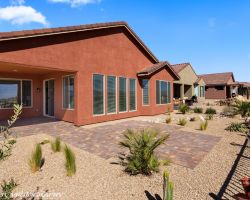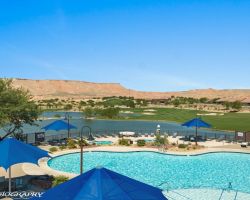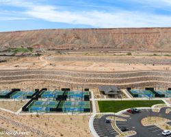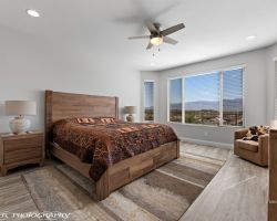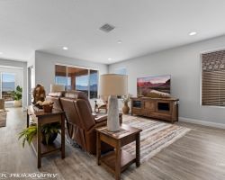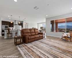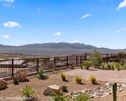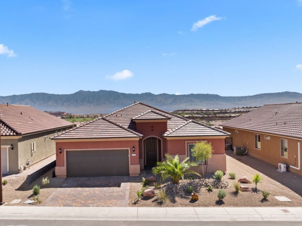 Absolutely awesome home with gorgeous forever views from a high elevation lot. Less than a year old, only used as a vacation home ... this elegant home is like brand new. The sun room extension on the dining area with big windows creates a lovely sitting area to enjoy the panoramic mountain views of 3 states. Watch the morning sun rise and catch the evening sunset reflections on the mountains, valley and golf course. Open floor plan includes a great room with built in wet bar and wine cooler. Owner added luxury vinyl flooring throughout the home - no carpet ! Kitchen with large breakfast bar and large pantry is a chef's delight. Upgraded granite counter tops and gorgeous cabinetry. Beautiful backyard with extended pavers and colorful desert plants accented with palm trees and blooming cactus. The eastern orientation allows morning sunshine and shady afternoons. Sun City is the only 55+ community in Mesquite with a Recreation Center, pools, sports complex. Excellent Golf privileges on the Conestoga Golf Course.